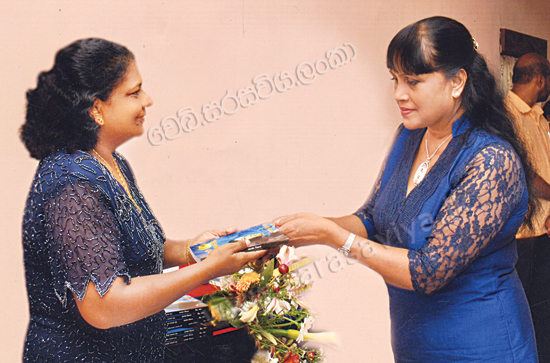 ඡායාරූපයෙන් දැක්වෙන්නේ ශ්යාමා විතාන, ලේඛිකා ප්රීති රන්දෙණියට එම කෘතිය පිළිගැන්