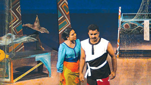කරගෙන. නාකුළුව ගමේ සිටිය ධීවරයන්ගේ කතාවද මේ. ‘තාත්තා පුංචි කාලයේ ඉඳලාම මුහුද අධ්යයනය කළා. ඔහුගේ කෙළිබිම වුණේ සාගරයයි. එහි ගීතවලට පවා අවට පරිසරය යොදා ගත්තා. පහන් තරුව පායන තුරු ඔහු බලාගෙන හිටියා. ඔහු මුහුද ජීවිතයට සම්බන්ධ කර ගත්තා. උඩින් බලන සුන්දරත්වය මුහුද යට නැති බවත්, එය ගැඹුරු හා භයානක බවත් දැක්කා. හරියටම එයත් අපගේ ජීවිතය වගේ. රැල්ලක් යන විට තවත් රැල්ලක් එනවා. මේ විදියට රැලි රැසක් එනවා. අපගේ ජීවිතයත් එහෙමයි. එක ප්රශ්නයක් ගියාට පස්සේ තවත් ප්රශ්නයක් එනවා. මේ විදියට නාට්යයේ ගීතවලින් හා දෙබස්වලින් යටි පෙළෙන් කියැවෙන්නේ ජීවිතයයි. ඒ විදියට ඔහු ප්රේක්ෂකයන්ට පිටපතේ අපූරු දැනුමක් ලබා දුන්නා. මෙහි චරිත ගත්තොත් සරා, හින්නිහාමි, දියෝනිස් කියන චරිතවල නම් ගත්තේ තාත්තා ජීවත්වුණු ගමෙන්මයි. ඒ චරිතවල ඉන්න නම් තියෙන අය අදත් ගමේ ජීවත් වෙනවා. ඒ කාලයේ ඔවුන් ඒ පිළිබඳ දැනගෙන බොහොම සතුටට පත් වුණු බවත් මා දන්නවා. ඔහු සියඹලා කනත්ත, රැකව, රිදීගම, කොළණිය වගේ ප්රදේශත් ගත්තේ ඒ පළාතෙන්මයි.