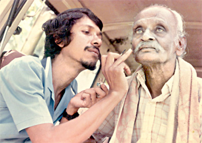 ඔබගේ ගුරුතුමා ඔබට මුණ ගැසෙන්නේ ‘දිනුම් කණුව’ චිත්රපටයේදී ද? ඔව්. මේ චිත්රපටයේ අංගරචනා ශිල්පියා ලෙස කටයුතු කරන්නේ ඩෙරික් ප්රනාන්දු මහත්තයායි. චිත්රපට ගැන ඉගෙන ගන්න තිබෙන උනන්දුව නිසාම මම මේ නිර්මාණයේ හැම දෙයකටම උදව් වෙනවා. “දිනුම් කණුව” චිත්රපටයේ කටයුතු අවසන් වනවාත් සමඟම වගේ තමයි මට ඩෙරික් ප්රනාන්දු මහත්තයා කතා කරලා ඉදිරියේ දී මොනවගේ දෙයක් ද කරන්න සිතාගෙන ඉන්නේ කියලා අහන්නේ. ඡායාරූප ශිල්පියෙකු වීමේ සිහිනය ගැන කිව්වට පස්සේ ඔහු ඒ ගැන මට පැහැදිලි කරනවා. ඒ විතරක් නොවෙයි කැමැති නම් ඔහුගේ සහය ශිල්පියා ලෙස වැඩ කරන්නත් හැකිබව මට පවසන්නේ මේ අතරයි. ඒ වගේම ඔහුගේ ආදරණීය ආරාධනාව මගේ සිත කම්පාවට පත් කරන්න සමත් වෙනවා. අම්මා, තාත්තා, නැතිව ජීවිතේ හොයාගෙන කොළඹට ආව මට මේ යෝජනාව ගැන දෙපාරක් හිතන්න කියලා මගේ සිතම මට බල කරන්නේ මේ අවස්ථාවෙයි. අවසානයේ ඒ යෝජනාවට මම එකඟ වෙනවා. ඔහුගේ සහය ශිල්පියා ලෙස චිත්රපට අසූවක විතර වැඩ කරන්න මට ලැබෙන්නේ ඉන් පස්සේ. ඊට පස්සේ ගුරුවරයා යටතේ බොහෝ වැඩකටයුතු කළා ? බොහොම ප්රසිද්ධ නළු නිළියන් සමඟ වැඩ කරන්න මට අවස්ථාව ලැබුණා. රැක්මණී දේවි, එඩී ජයමාන්න, මාලිනී ෆොන්සේකා ඇතුළු සියලුම ප්රසිද්ධ නළු - නිළියන් ඊට ඇතුළත්. ඔහු බොහොම ආශාවෙන් මම වැඩ කරන ආකාරය බලාගෙන සිටියා. තනියම වැඩ කරන්න පුළුවන් බව දැනුණාට පස්සේ ඔහුම කතා කරලා මාව නිර්මාණවලට යොමු කළා. ඒ විදියට මුලින්ම ලැබුණේ ඩෙන්සිල් පී. අබේවර්ධනගේ ‘විසිහතර පැය’ කියන චිත්රපටයයි. ඉන් පස්සේ ඔබ තෝරා ගන්නේ රූපවාහිනියයි ? රූපවාහිනියට පිවිසෙන්නට මට ආරාධනා ලැබුණට පස්සේ මේ විෂයය පිළිබඳ ඒ වෙනස්ම අත්දැකීම ගන්න මට උවමනා වුණා. ඒ අනුව මුලින්ම ස්වාධීන රූපවාහිනියටත්, පසුව ජාතික රූපවාහිනියටත් ඇතුළත් වෙන්න මට අවස්ථාව උදාවුණා. ජාතික රූපවාහිනියේ අංගරචනා අංශය ආරම්භ කරන්නේ මගේ ගුරුතුමා ඇතුළු මමත් රංජිත් තිලකසිරිත්. මේ නිසා රූපවාහිනියේ ඉදිරිපත් වන සෑම වැඩසටහනකම ශිල්පීන් සඳහා අංගරචනා කටයුත්තේ නියැළුණේ අපයි. මේ කාර්යය එහි එන සමහර ශිල්පීන්ට නුහුරු නුපුරුදු වුණා. කිසි දිනෙක අංගරචනා කටයුත්තට මුහුණ නොදුන් දේශපාලනඥයන්ට පවා මේ කටයුත්තට මුහුණ දෙන්නට සිදුවුණා. ඒ අවස්ථාවලදි ඔවුන් විමසුවේ අපි නළුවෝ නොවෙයි නේ මේ අපිටත් මේකප් කරන්න ඕනෑ ද කියන ප්රශ්නයයි. ඒ අවස්ථාවලදි ඔවුන්ට බොහොම කාරුණිකව පැහැදිලි කරලා දුන්නාට පස්සේ ඒ ගැටලුව විසඳා ගන්නට අපට හැකියාව ලැබුණා. ඒ වගේම මේකප් එකට බොහොම ලැජ්ජාවෙන් මුහුණ දුන් අයත් ඒ අතර සිටියා. මේ වගේ අංගරචනය ගණන් නොගත්ත අය කවුද? මට මතක විදියට මේ දේ සිද්ධ වුණේ අසූදෙකේදියි. ඒ කාලයේදී තිබුණු දේශපාලන සංවාද සඳහා පැමිණි විවිධ දේශපාලනඥයන්ව මේකප් කරලා ඊට සහභාගි කරවන කටයුත්ත භාරවුණේ අපටයි. දවසක් ඒ කාලයේ හිටිය